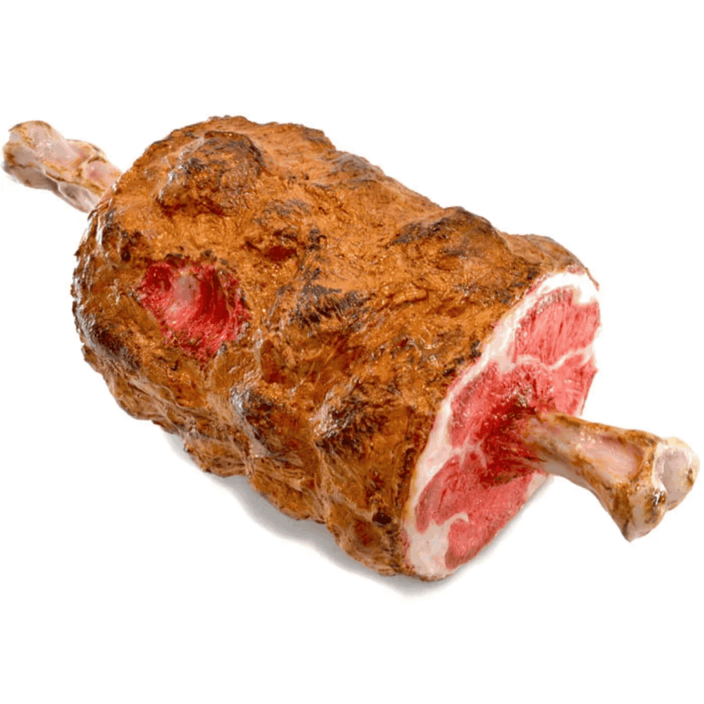 アニメや漫画に登場しそうな、マンモスの骨付き肉の特大版です。お肉の断面の部分や、骨の質感がとてもリアル。一部齧り付いたような跡が再現されています。